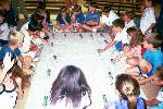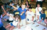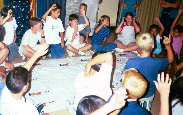 The students demonstrate teamwork and problem solving as they help