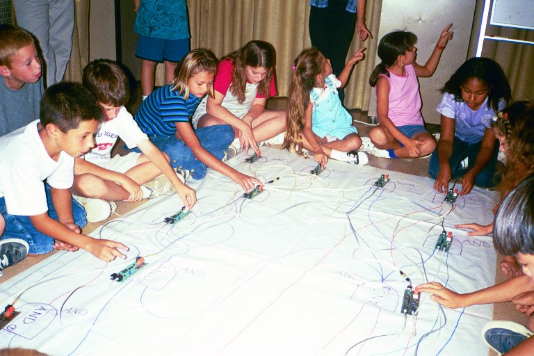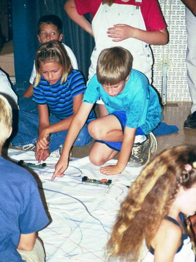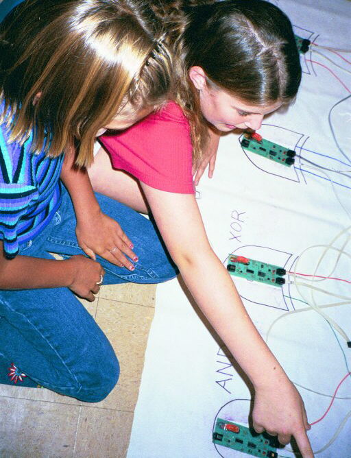 to guide the students in connecting their gates. Two teams run two