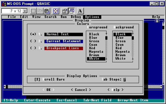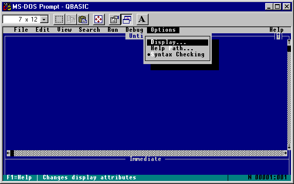 that you'd like to use in QBASIC. You can do this with the "Options" menu. I