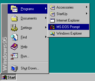 MS-DOS Prompt. This will open a DOS window as shown in the next